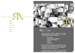 | Recruiting Alliance Corporation is a placement company located in the North Metro Atlanta area. The site is designed to show clean lines and an overall professional presentation. The site also includes a simple CMS interface. |