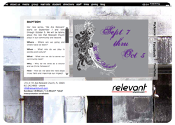 | Relevant Church is located in Tampa, FL in Ybor city. The site was designed to appeal to the church's young urban crowd. The site includes CMS with our custom video/audio podcasting module. |